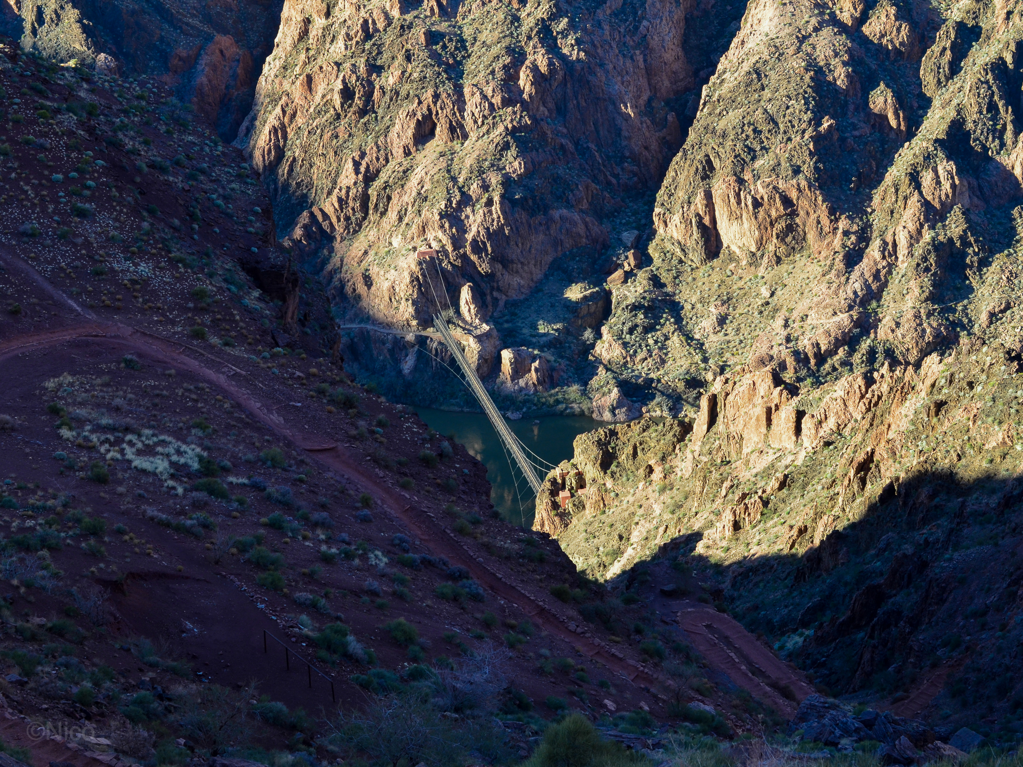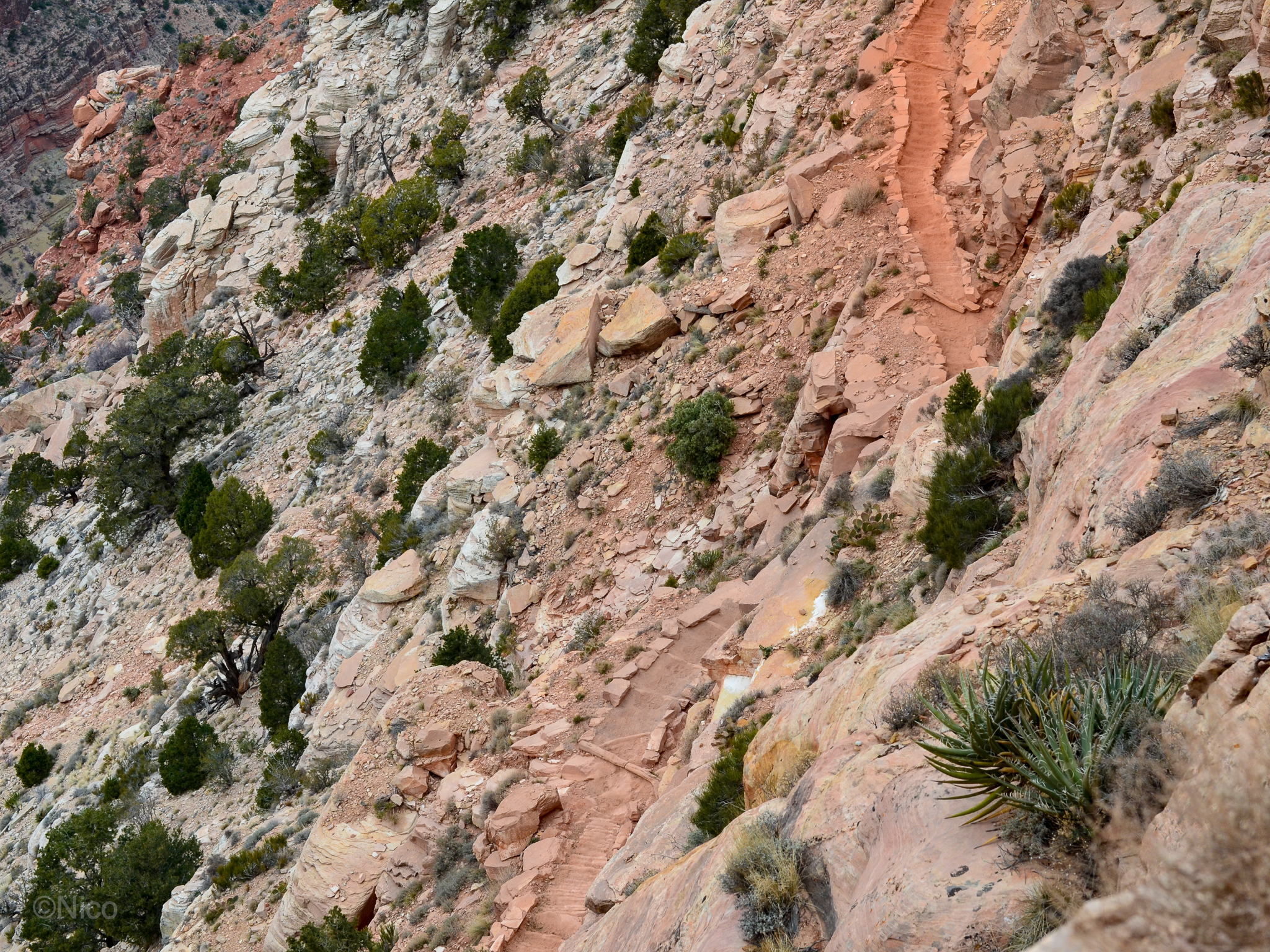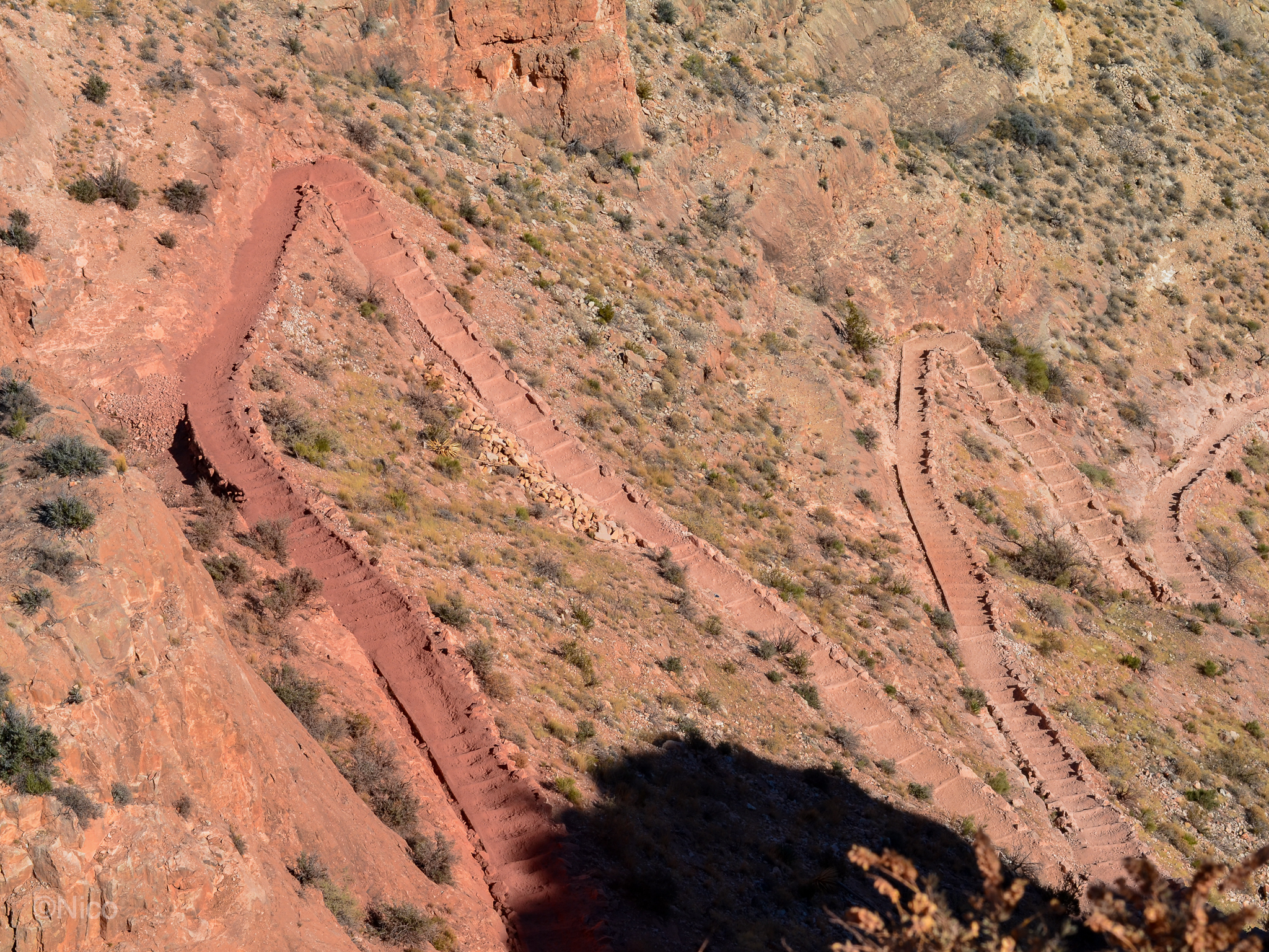 On Kaibab switchbacks, one false step and — Kaput. The far west border of Iran. Here, minutes below The Trailhead, it’s four-hundred feet to the slope which feeds you toward a free-fall of a few hundred more. It can take days or weeks to spot victims through binoculars. Grand Canyon is subjected to the same phenomena as other National Parks where the number of disappearances have swollen to over a thousand since the NPS was created (1916). Most disappearances occur within 30-50 yards of friends or family and most bodies are never found. Statistics reveal a disproportionate number of victims between the ages of fifty-four and seventy-four. Jeff and I were sixty-going-on-sixty-one when we started down The Kaibab that morning of January 28th 2014.